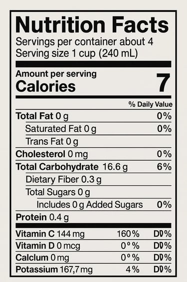 Ingredients: Water, Aloe Vera Pulp, Citric Acid, Ascorbic Acid, Sodium Citrate, Potassium Sorbate, Sodium Benzoate, Xanthan Gum.
